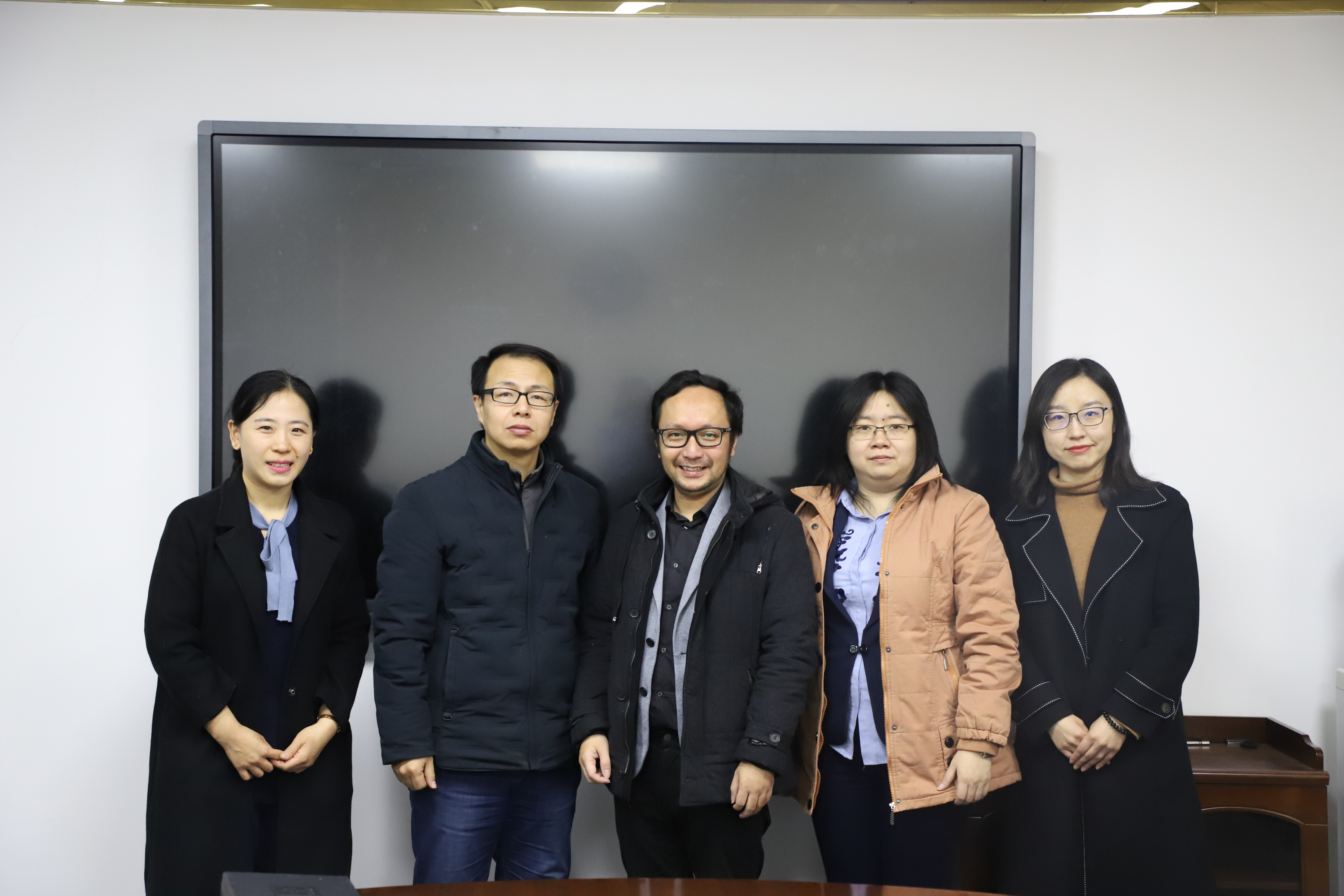 12月12日,印尼玛拉拿达基督教大学第三副校长罗比·尤萨·泰勒 (ROBBY YUSSAC TALLAR)、印尼玛拉拿达基督教大学孔子学院外方院长陈丽雅(Septerianie Sutandi)在国际合作交流中心马岚老师的陪同下到红桃视频 交流。张志杰院长、白玫副院长参加了座谈。